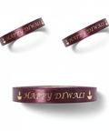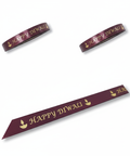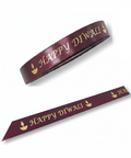 10mm Happy Diwali Ribbon - Burgundy with Metallic Gold Print