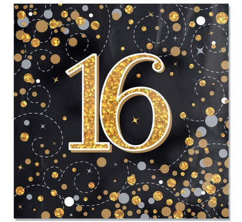 16th Gold and Black Sparkle Napkins (Pack of 16)