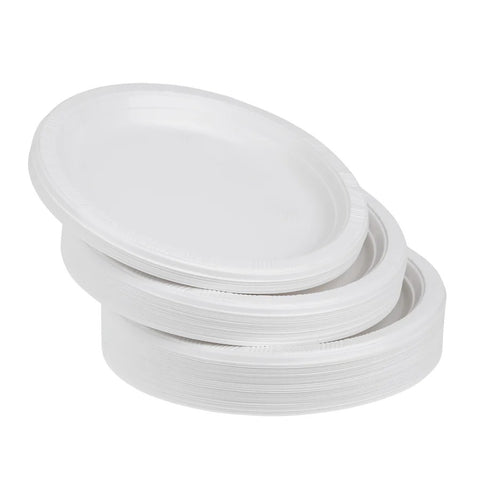 A 9" white plastic plate. Each purchase will contain 1 plates.