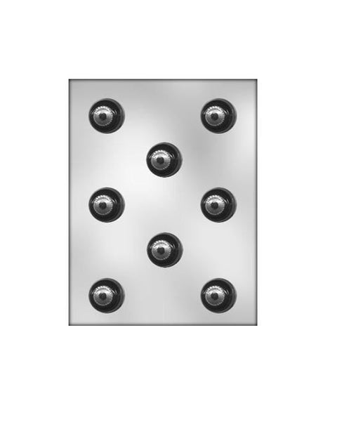 8 cavities in total on this chocolate mould.Each deep filled chocolate piece measures approximately 33mm x 2mm