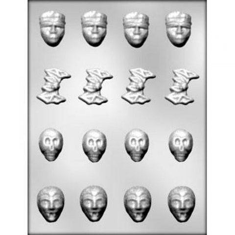 High grade, food safe plastic mould, containing Dracula, Frankenstein, Bat & Skull. Perfect for moulding chocolates