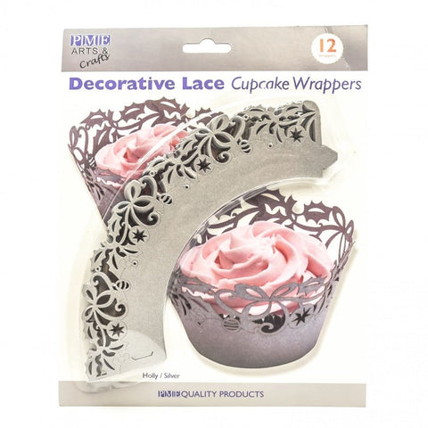 Includes 12 Silver Holly Decorative Lace Cupcake Wrappers, adjustable to find any standard and large cupcake cases./> Made from pearlescent card, the laser cut design is ideal for adding that extra finishing touch to your pre-baked cupcakes and muffins.