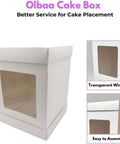 Showcase your beautifully decorated cakes with the OLBAA 12" x 20" Tall Window Cake Box – the ultimate solution for presenting and transporting tiered cakes with elegance and security. Whether you're a professional baker, caterer, or home baking enthusiast, this high-quality cake box ensures your cakes remain intact and visually stunning from your kitchen to the event venue.
