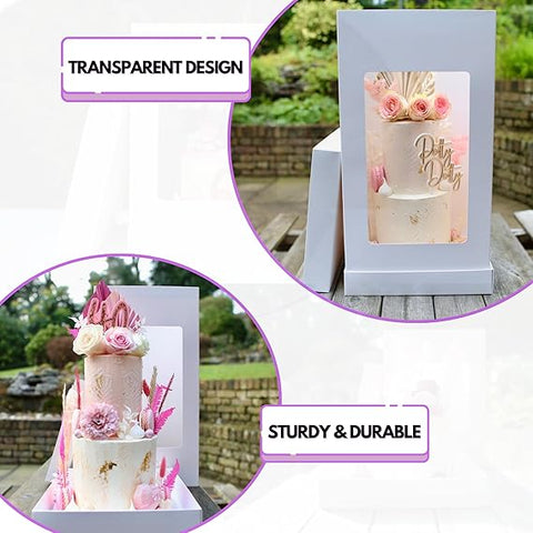 The large, transparent front window elegantly showcases your cake design without needing to open the box, making it perfect for bakeries, catering businesses, and cake decorators who want to impress customers and guests.