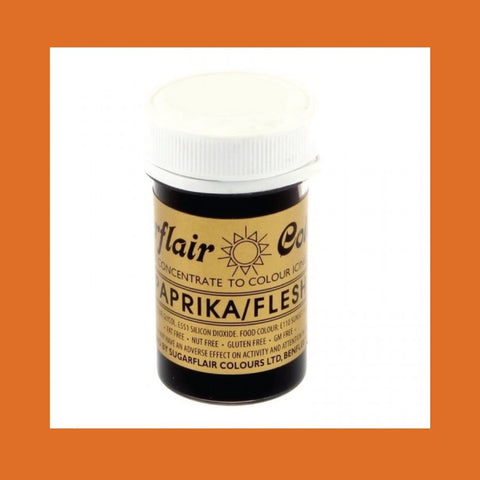 Paprika Sugarflair Food Colouring 25g pot This is a popular colour for flesh depending on the skin tone you are reproducing. This strong professional grade food colouring works perfectly with, fondant, sugarpaste, roll out icing, petal paste, flower past